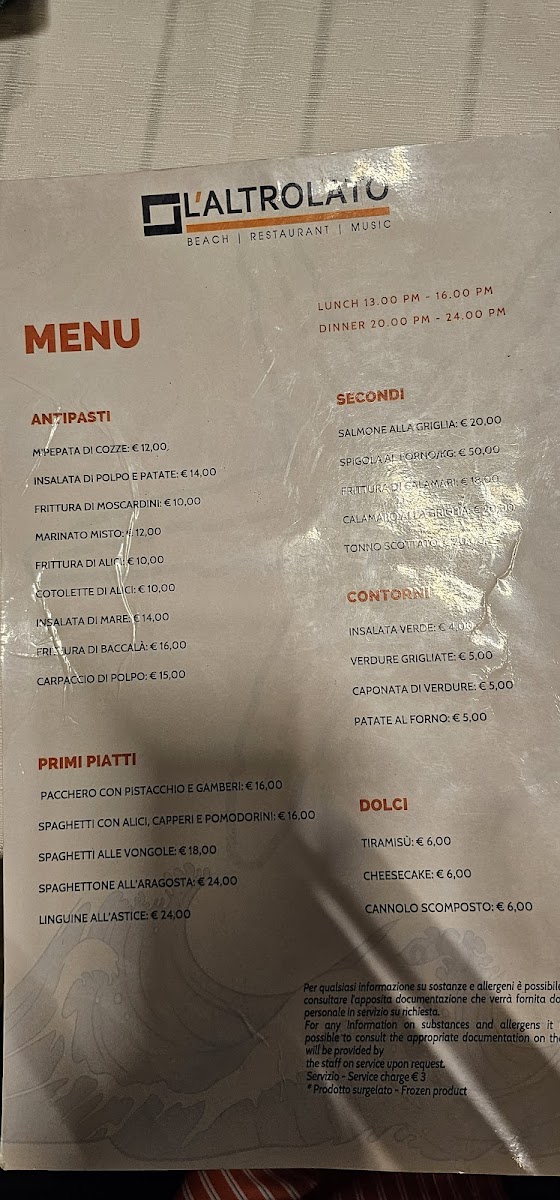 Welcome to Ristorante L'altro Lato Beach, a hidden gem on the stunning Calabrian coast, specifically at Via Riviera Azzurra in Cirella. This enchanting seaside restaurant offers a culinary experience that pairs the freshest seafood with a relaxed, inviting atmosphere. Customers rave about the expertly prepared dishes, especially the red prawns tartare and the delicate fish pasta, which perfectly capture the authentic flavors of the sea.